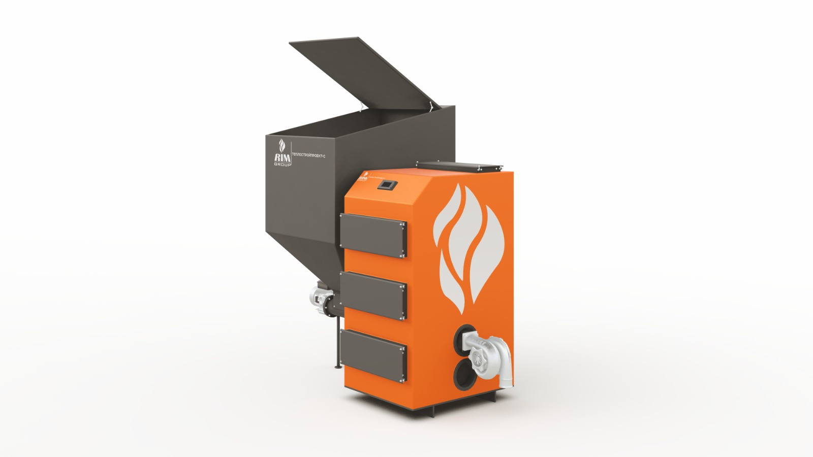 Автоматический угольно-пеллетный котёл RIM MAX–T – водяной котёл длительного горения. Он работает на твёрдом топливе – угле, пеллетах. Котел оснащен шнеком, загрузка топлива задаётся на микропроцессорном контроллере в автоматическом режиме.