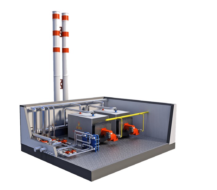 Автоматизированные транспортабельные блочно-модульные водогрейные котельные от 140 кВт до 21 000 кВт. Наши котельные предназначены для теплоснабжения площади до 210 000 кв. м. и горячего водоснабжения объектов промышленности и жилищно-коммунального хозяйства. В котельных данного типа устанавливаются водогрейные котлы собственного производства серии RIM MAX. Они работают на газе и дизельном топливе. Автоматизированная котельная не требует постоянного присутствия оператора. Программное обеспечение контролирует температуру, предупреждает аварийные ситуации, отключает установку при неполадках, оповещает о внештатных ситуациях
