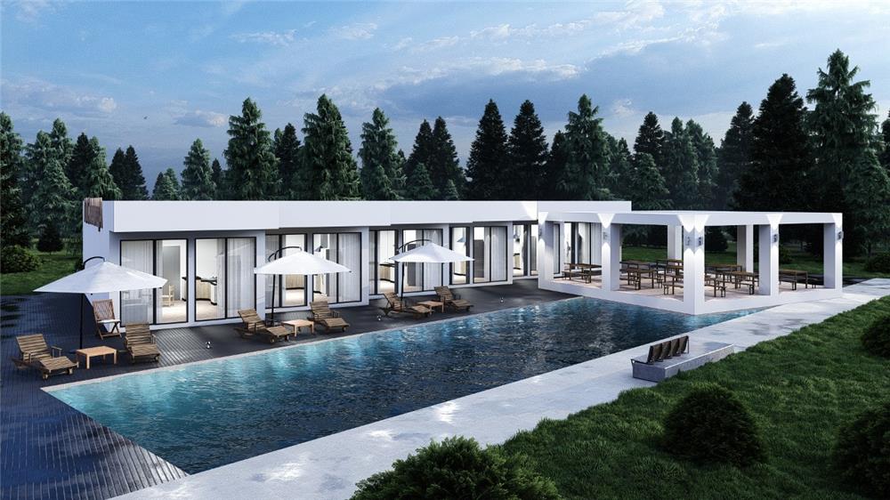 Одноэтажная гостиница с бассейном