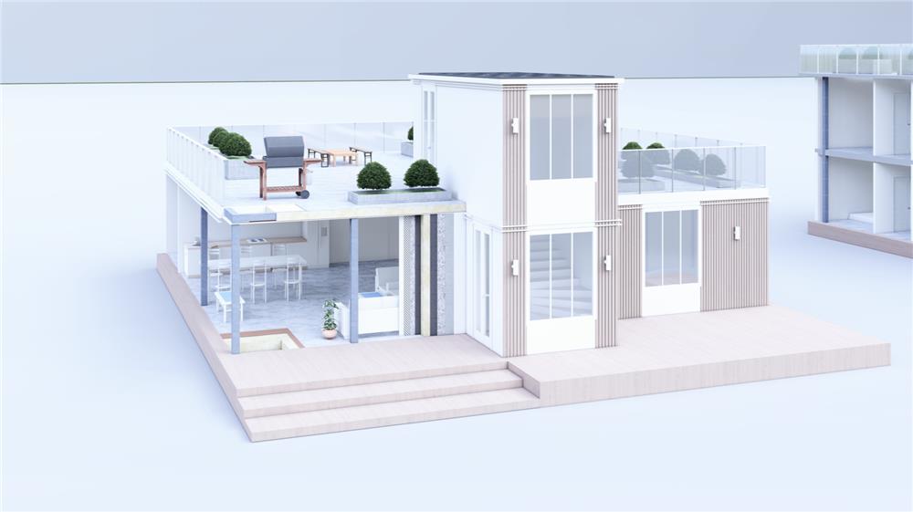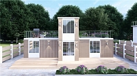Каркасы быстровозводимых модулей для зданий изготавливаются из лёгких стальных тонкостенных конструкций, а в качестве перекрытий используют балки, монтаж которых не требует применения мощной строительной техники. Эксплуатируемую кровлю используют разными способами, например – обустраивают террасу для отдыха или лужайку, на которой можно поставить тренажер для занятий спортом на открытом воздухе