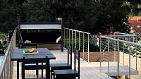 Каркасы быстровозводимых модулей для зданий изготавливаются из лёгких стальных тонкостенных конструкций, а в качестве перекрытий используют балки, монтаж которых не требует применения мощной строительной техники. Эксплуатируемую кровлю используют разными способами, например – обустраивают террасу для отдыха или лужайку, на которой можно поставить тренажер для занятий спортом на открытом воздухе